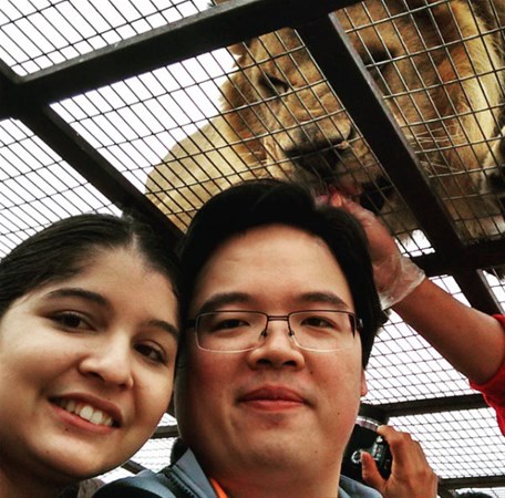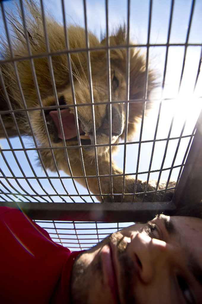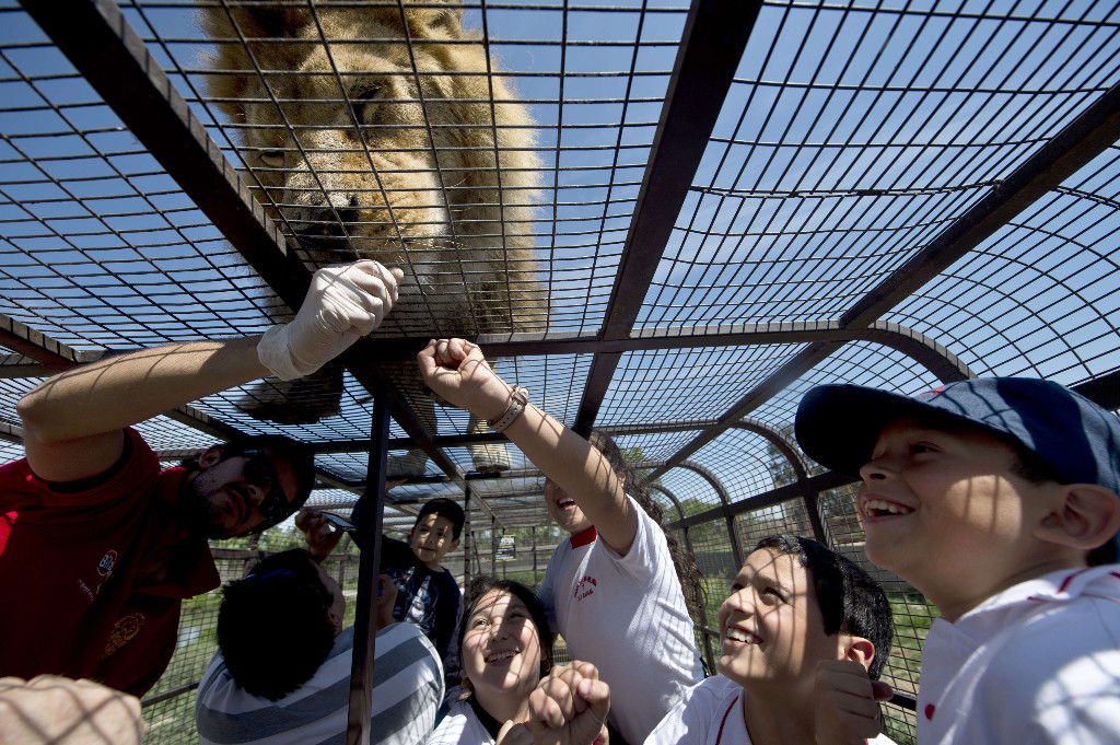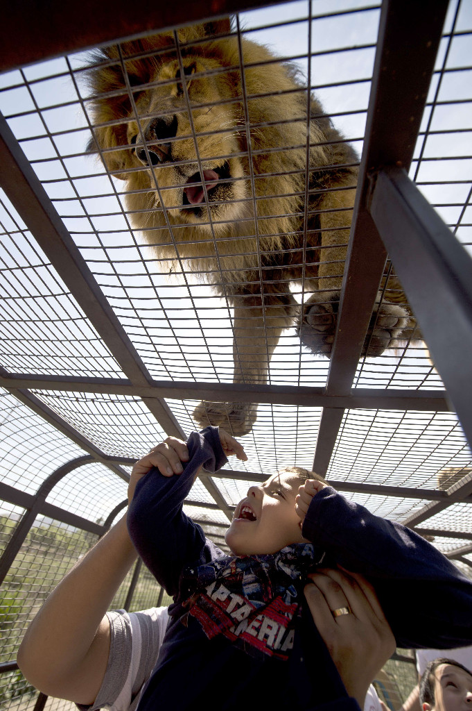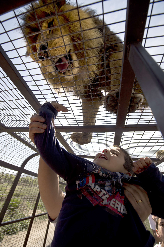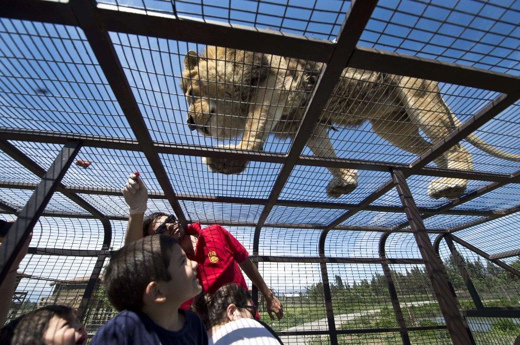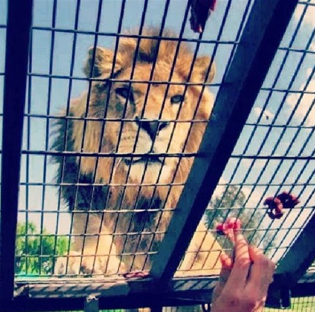 Aslanlar, ziyaretçilerin bulunduğu kafeslerin üzerine tırmandığında, cesur hayvanseverler aslanların pençelerine bile dokunabiliyor.