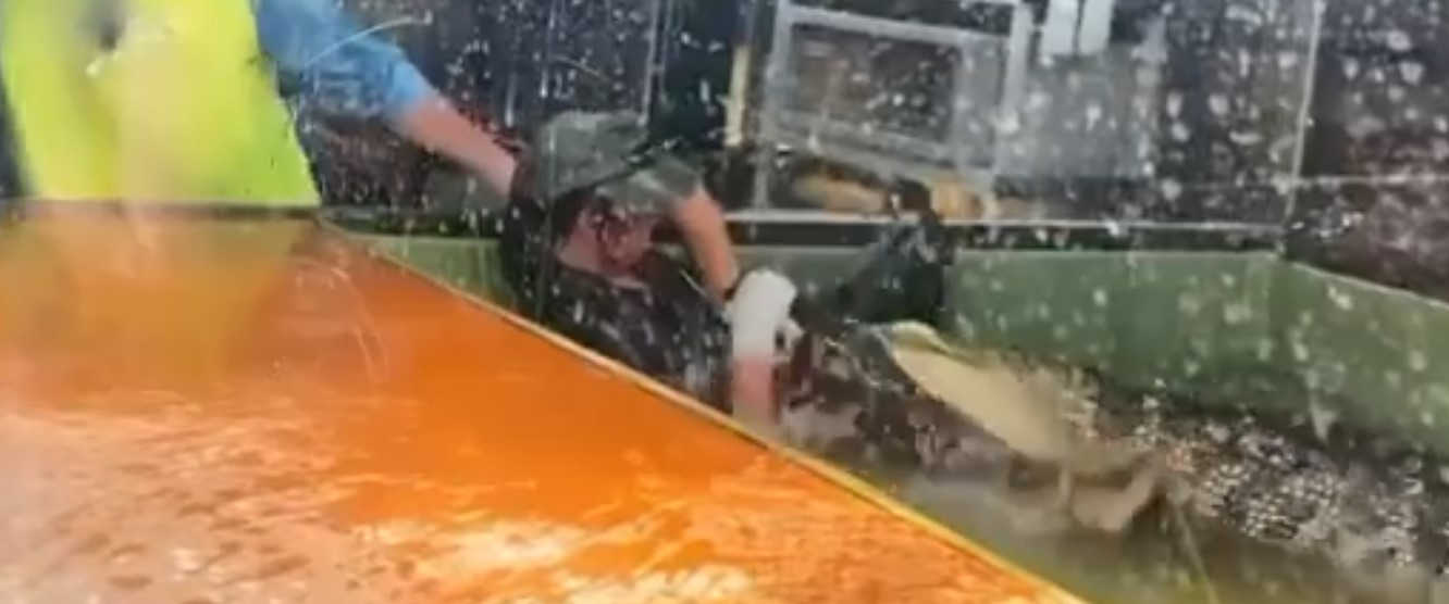 Vahşi yaşam parkında dehşet 🐊 Timsah bakıcısına saldırdı | Kolundan tutup dönmeye başladı
