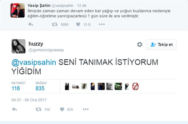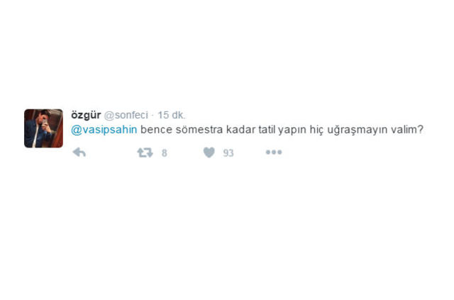 İstanbul'da okulların tatil edilmesi öğrencileri sevince boğdu. Sosyal medyada kararı coşkuyla karşılayan öğrenciler, Vali Vasip Şahin'e sevgi mesajları gönderdi. Vali Şahin için çok sayıda caps hazırlanıp sosyal medyada paylaşıldı. İşte o mesajlardan bazıları: