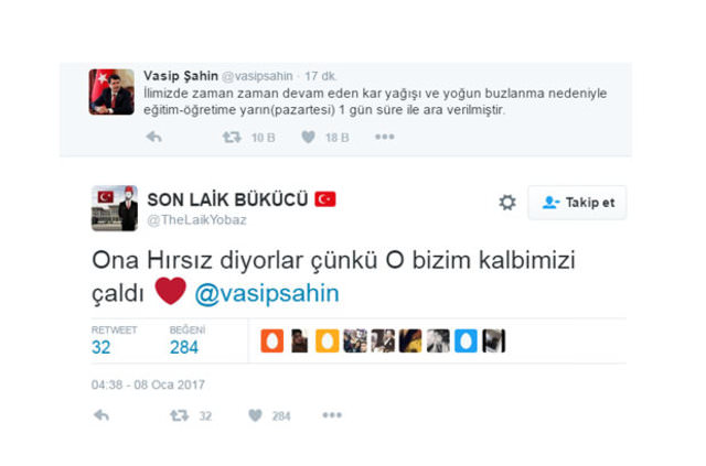 Vali Şahin için çok sayıda caps hazırlanıp sosyal medyada paylaşıldı.