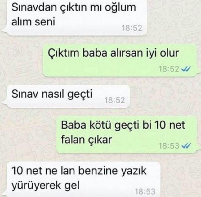 İnternet dünyasının en çok kullanılan programlarının başında gelen Whatsapp, bir mesajlaşma uygulamasıdır. Milyarlarca kullanıcıya sahip Whatsapp'ta gün içinde komik diyaloglara da imza atılıyor.