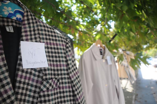Asılan elbiselerle açık bir butiğe dönen sokaktaki onlarca kıyafet, kısa süreler içerisinde ihtiyaç sahipleri tarafından alındı.