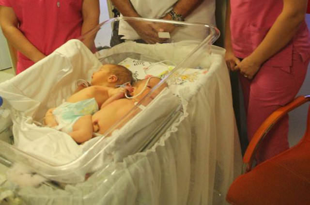 Tüp bebek tedavisi sonrasında bebek sahibi olacaklarını öğrenince büyük sevinç yaşayan çift, doğuma bir ay kala ise ikizlerin kalça kısmından yapışık doğacağını öğrenen aile büyük şaşkınlık yaşadı.