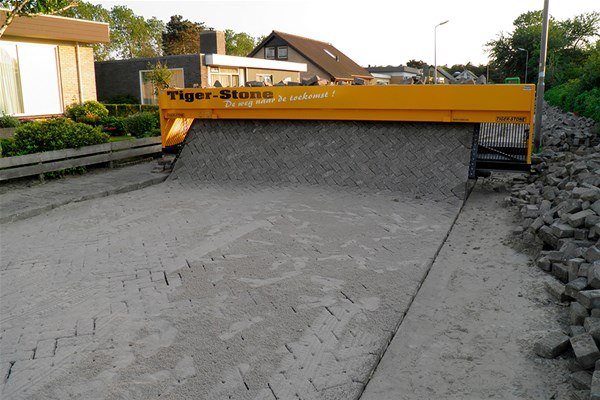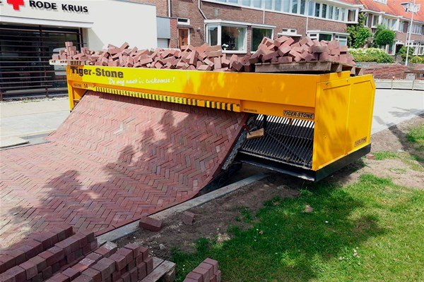 Hollandalı Vanku firması tarafından geliştirilen taş döşeme makinası Tiger Stone, cadde ve sokaklarda düzgün ve seri bir şekilde kilit taşı döşemekte kullanılıyor.