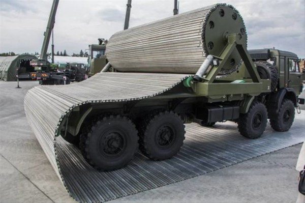Arazilerin geçilmesi imkansız, su altında kalan zor yerlerinde ilerleyebilmek için tasarlanan bu makina, 100 metre uzunluğunda ve 4,6 m genişliğinde yollar döşeyerek geçişlere imkan sağlıyor.