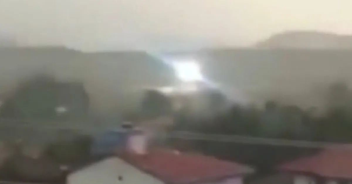 Yıldırımın düşmesi vatandaş kamerasına saniye saniye yansıdı.