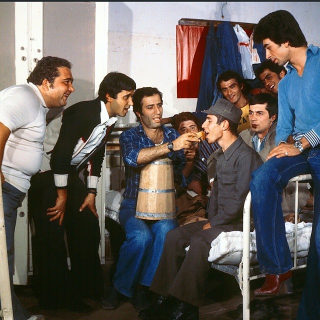 "Hababam Sınıfı Uyanıyor" Serinin 3.filmi...Fotoğraf da görülen "Ahmet Arıman" o sene gerçekten askerliğini yapıyor ve seti ziyarete geldiğinde senaryoda olmadığı halde bir çok sahne ekleniyor film'e... Film çekerken ne kadar çok, ani ve doğru karar vermek zorunda kalındığının, şartlara göre esnekliğin, yönetmenlik adına ne kadar önemli olduğunun iyi bir örneğini oluşturuyor bu film!..Eklenen tek bir sahne de değil, oldukça yer tutuyor Hayta İsmail sahneleri filmin süresi içinde!... Aynı zamanda Halit Akçatepe'nin Güdük Necmisini de son kez görüyoruz bu seride!..
