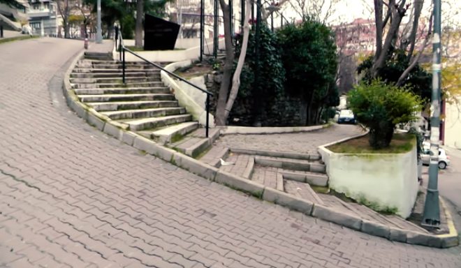 İşte bu sahnenin çekildiği yer Beşiktaş Çatlakçeşme Sokak.