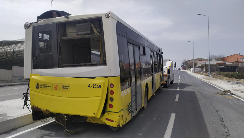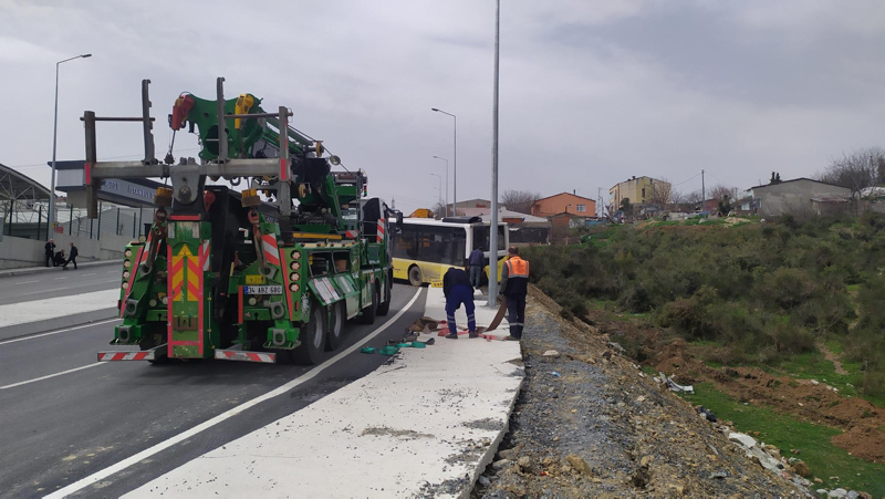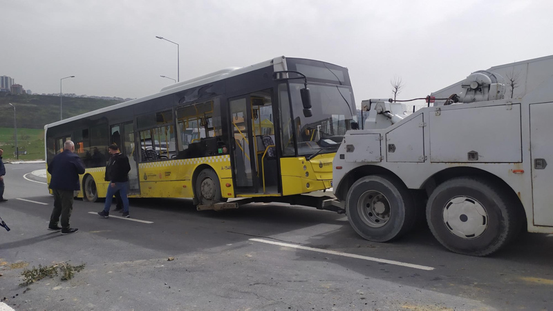 Başakşehir'de park halindeki boş İETT otobüsü freni boşalınca şarampole uçtu. Otobüs kurtarıcı araçla çekildiği sırada bir kaza daha meydana geldi. Otobüsün çarptığı otomobil hasar gördü.