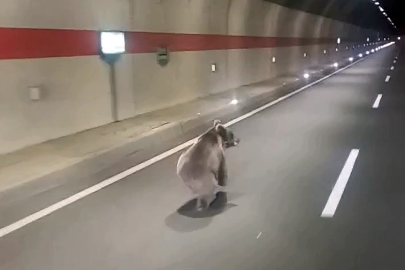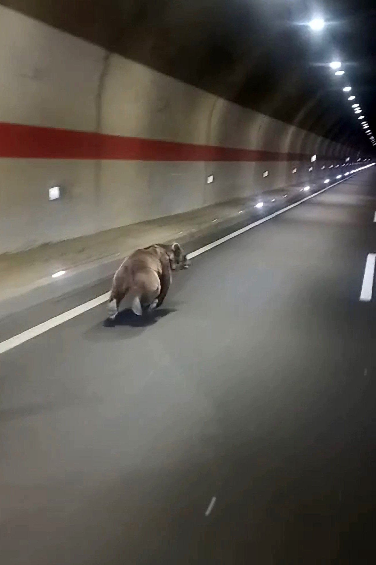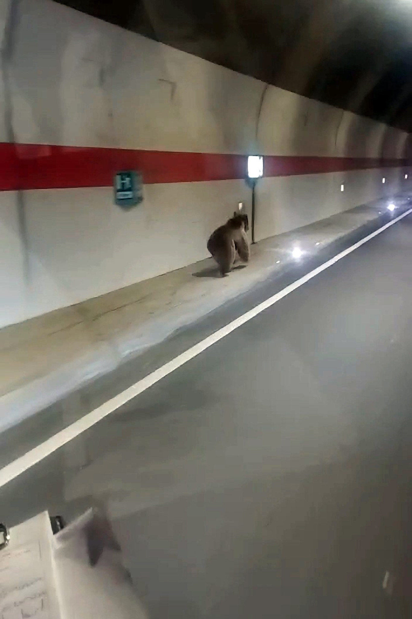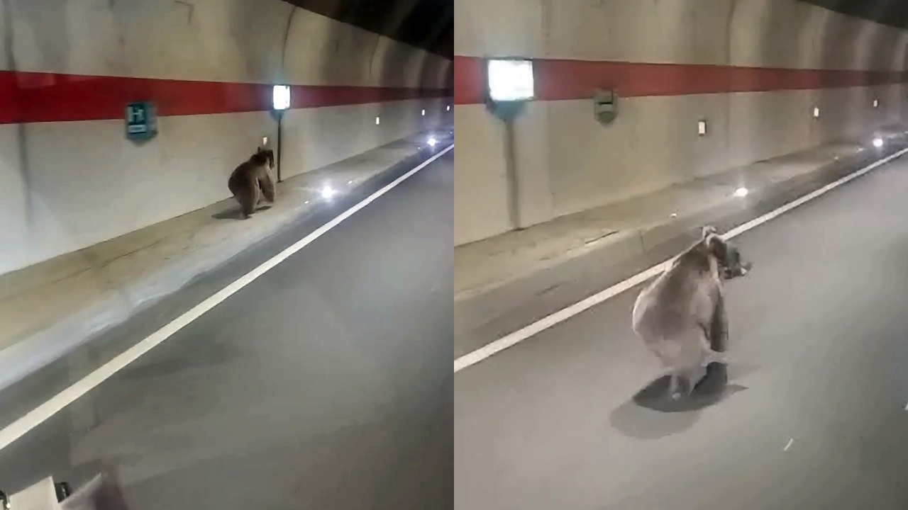 Dağın diğer yamacına tırmanarak gitmek yerine tünelin kestirme olduğunu fark ederek hızla Mescitli tünelinin içinden geçen ayı, otobüsle seyahat eden bir vatandaş tarafından görüntülendi.
