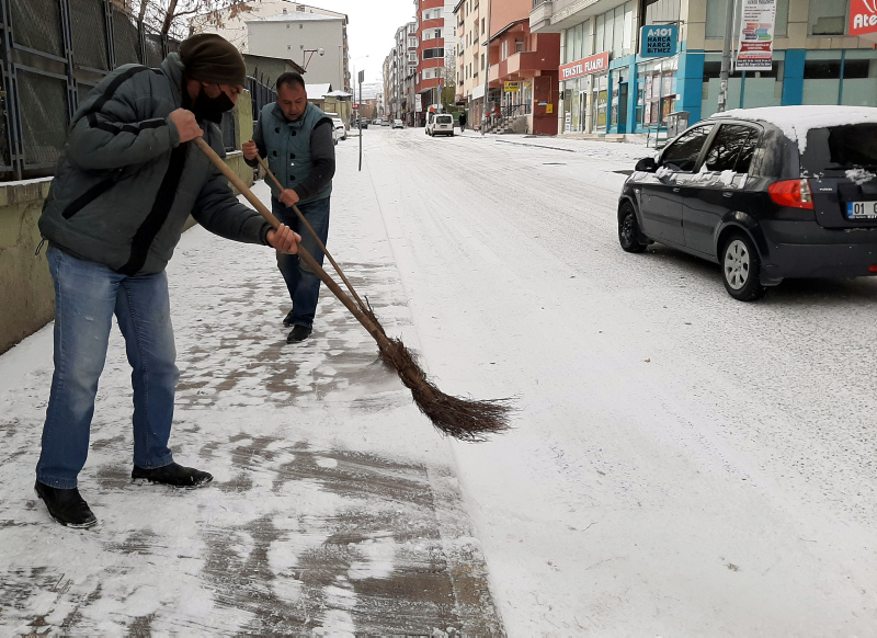 Bölgede karla mücadele çalışması başlatan Karayolları ekipleri, sürücüleri tedbirli olmaları konusunda uyardı.