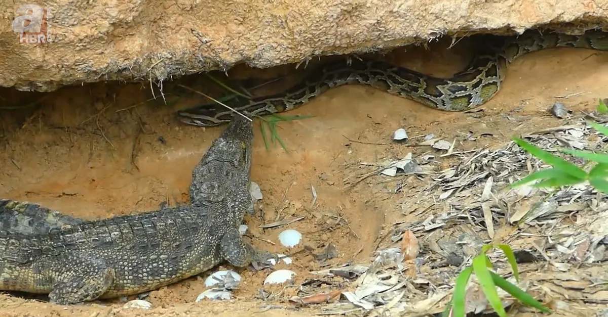Yumurtalarını koruyan timsah ve dev pitonun yaşam mücadelesi! O anlar böyle görüntülendi