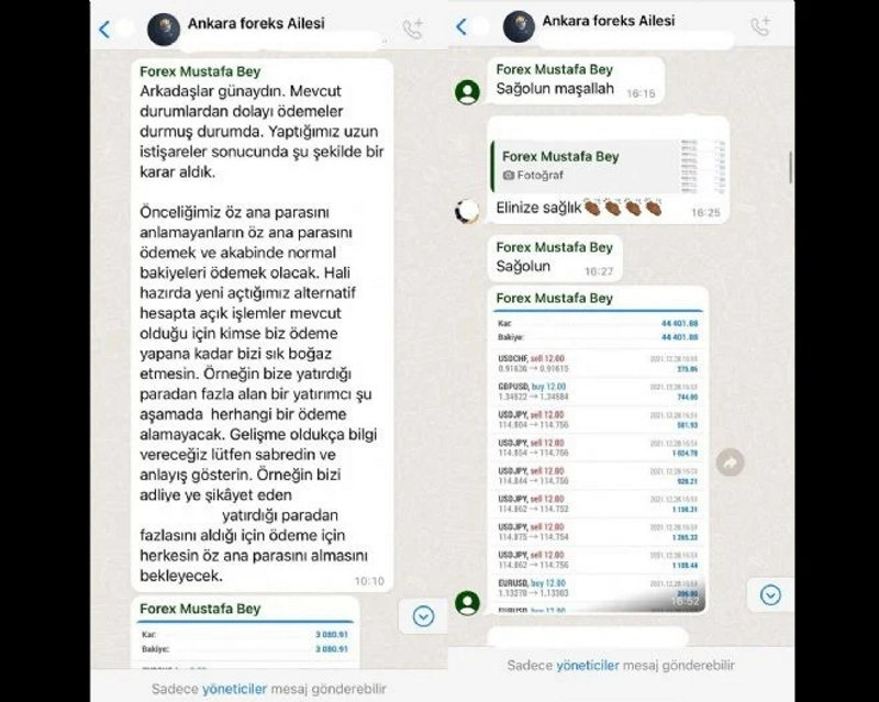 Saadet zinciri vurgunlarına yenisi eklendi. Ankara, İzmir, Antalya, Muğla ve Aydın'da faaliyet gösteren çete, Sermaye Piyasası Kurulu'na (SPK) kayıtlı oldukları yalanıyla binlerce kişiyi yüksek kazançlı forex yatırımı tuzağına çekti. Şebeke yöneticileri Ankara ve İzmir'de iki ofis açtı. WhatsApp grubunda sözde kazançlarla alınan ev, dükkan ve otomobillerin paylaşılması mağdurları daha fazla para yatırmaya teşvik etti. Bu yöntemle yaklaşık 200 milyonluk vurgun yapıldı.