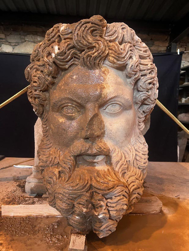 66 santim yüksekliğindeki baş, yoğun şekilde katılaşmış toprak birikintilerini gidermek için ön temizlik ve konservasyon işlemlerinden geçirildi. Orta taneli Aphrodisas mermerinden tek bir bloktan yapılan baş, milattan sonra 2'nci- 3'üncü yüzyıla tarihlendirildi.