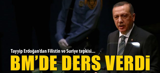 Konuşmasında BM'yi de sorgulayan Erdoğan, kararların Güvenlik Konseyindeki beş ülkenin inisiyatifinde olmasını da eleştirdi, "Altını çizerek söylemek isterim ki, dünya beşten büyüktür" dedi. Obama'nın dile getirdiği Filistin'deki iki devletli çözüm için "Artık söz değil icraat zamanı" ifadelerini kullanan Erdoğan, Mısır darbecisi Sisi'nin meşrulaştırılmasına da isyan etti, "Darbeyle gelenler meşrulaştırılacaksa BM niye var diyorum" diyen Erdoğan konuşmasında ayrıca şu mesajları verdi :