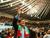 Salon içini çevreleyen platformdan geçerek vatandaşları selamlayan Davutoğlu ve eşi karanfil dağıttı. Bu sırada salonda kendisi için uyarlanan "Kiziroğlu Mustafa Bey" parçası Kürtçe olarak çaldı.