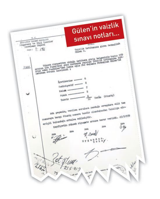 Diyanet İşleri'nin arşivindeki belgelere göre, Fethullah Gülen vaizlik sınavını kıl payı kazanabilmiş. Din İşleri Yüksek Kurulu da Gülen'le ilgili şu kararı almış: İlgili ayet ve hadisleri risalesine almamış. Konuyla alakasız sözler zikretmiş