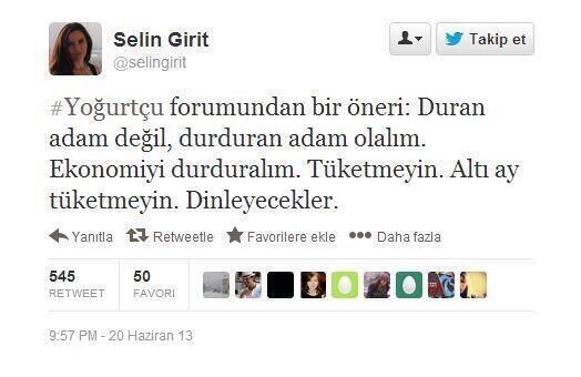 Gezi olaylarında 'ekonominin durdurulması' çağrısı yapan BBC muhabiri Selin Girit de bu haberi sosyal medyada yaymak için hiç zaman kaybetmedi.