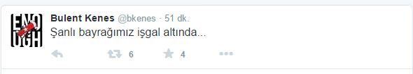 Paralel Yapı'nın yabancı dildeki yalan bülteni Today's Zaman'ın Genel Yayın Yönetmeni Bülent Keneş skandal tweetler attı. 'Cemaatçi' Keneş, terör olaylarına karşı "Milyonlarca Nefes, Teröre Karşı Tek Ses" protestosundaki Kur'an tilavetinden ve alandaki Türk Bayraklarından rahatsız oldu.