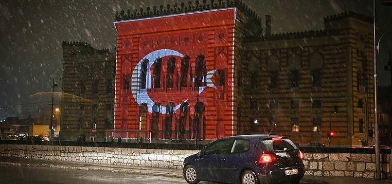 Başbakan Davutoğlu, terör saldırılarılarına maruz kalan Türkiye'ye destek için, Vijecnica Kütüphanesi'nin dış cephesine Türk bayrağının yansıtılması nedeniyle Bosna Hersek'e teşekkür etti