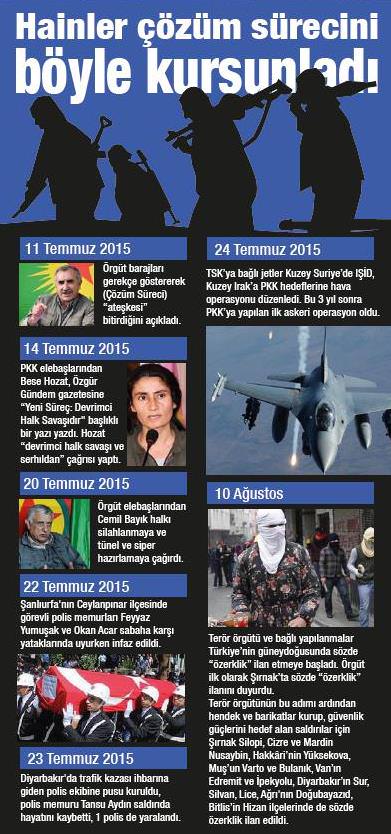 Terör örgütünün çözüm sürecini sabote etmesinden hemen sonra, örgütün Kandil'deki kamplarına yönelik ilk operasyon geçen yıl 24 Temmuz'da gerçekleştirildi. F-16 ve F 2020 savaş uçaklarının Kuzey Irak'taki Metina, Zap ve Gara'nın da aralarında terör kamlarındaki sığınak, depo, mevziler, barınma ve depolanma alanları hedef alındı. Operasyonlarda Bin'in üzerinde terörist öldürüldü. Yurt içi ve yurt dışında yürütülen operasyonlarda öldürülen terörist sayısı toplamda 3 bini geçti.