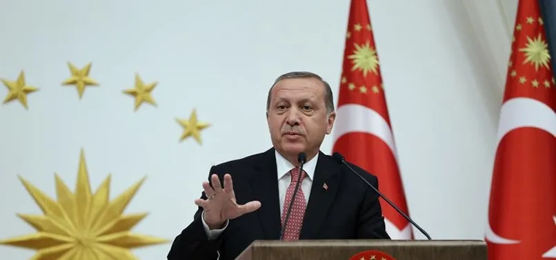 Erdoğan, "Yüzyıl önce binlerce kilometre ötelerden farklı milletlerin askerlerini Çanakkale önlerine getiren saik neyse bugün de dünyanın dört bir köşesinde teröristleri örgütün saflarında buluşturan neden aynıdır. O gün İstanbul'u işgal etmenin rüyası içinde 450 yıllık araya son verme özlemiyle gelenler, bugün de terör örgütünü aynı hedef için maşa olarak kullanıyor. Haçlı seferlerinin, Moğol istilasının, Sevr'in yarım bıraktığı işi bu kez terör örgütü üzerinden tamamlamak istiyorlar. Tüm ideolojik farklılıkları bırakarak, kanlı bıçaklı terör örgütlerini aynı çatı altında birleştiren sebep budur." şeklinde konuştu.