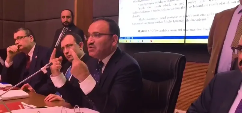 Adalet Bakanı Bozdağ "Anayasa yapmak milletin verdiği, yetkiyi kullanmaktır, görevi yerine getirmektir. Milletin emrine uymaktır. Eğer parlamentonun Anayasa yapma veya Anayasayı değiştirme yetkisini kullanmasını hainlik olarak görürseniz o zaman darbecilere sadece Anayasa yapma yolunu açarsınız. Bu fevkalade yanlıştır. Bakın kaç gündür tartışılıyor: 'Anayasayı değiştiremezsiniz,Anayasa yapamazsınız' Anayasayı değiştirebilir bu parlamento, yeni anayasa yapabilir bu parlamento buna ehildir. Bu parlamentoyu yeni Anayasa yapmaya ehil görmeyenler veya Anayasa'da değişiklik yapmaya ehil görmeyenler demokrasiyi hazmedememiş olanlardır. Eğer biz de demokrasiyi hazmetmiş olursak burada Anayasayı değiştirmeye hainlik diyemeyiz. Demokrat birisi bunu söyleyemez. Siz bunu söyleyemezsiniz. Demokrasiye inanan birisi parlamento Anayasa'nın verdiği yetkiler çerçevesinde vazifesini yapıyor, bir milletvekili çıkıyor buna ihanet diyor. Kabul edilebilir bir şey mi? Demokrat birinin söyleyeceği bir şey mi? Kim yapacak Anayasa'yı o zaman, kim değiştirecek Anayasa'yı. O zaman ne olacak, böyle bir şey olur mu? Bu parlamento değiştirecektir. Bu Parlamento her şeyi yapmaya ehildir. Bunu açıkça ifade ediyorum. Bu düzenleme demokrasiyi güçlendiriyor, hukuk devletini güçlendiriyor, kuvvetler ayrılığını tahkim ediyor, yasama yürütmeyi birbirine karşı daha güçlü, birbirinden daha bağımsız hareket edecek hale getiriyor, kuvvetler birliğini değil, kuvvetler ayrılığını tahkim ediyor." dedi.