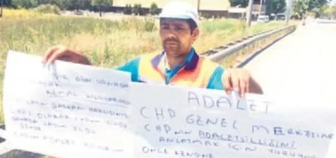 Bursa'nın CHP'li Nilüfer Belediyesi'nde işçi olarak çalışan ve haksız yere işten çıkarıldığını söyleyen 43 yaşındaki 2 çocuk babası Yusuf Yiğit, Bursa'dan Ankara'ya yürümek için yola çıktı. "Ben de CHP'den adalet istiyorum" diyen Yiğit, "Kılıçdaroğlu adalet için yürüdüğünü söylüyor. Ben de aynı şekilde yürüyerek onu protesto ediyorum. CHP önce kendisini görsün. CHP'yi desteklemeyen bir muhtara selam verdiğim için işten çıkarıldım" dedi.