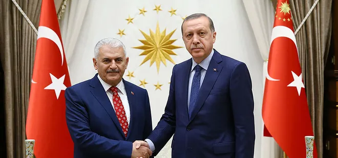 Cumhurbaşkanı Recep Tayyip Erdoğan, Cumhurbaşkanlığı Külliyesi'nde Başbakan Binali Yıldırım'ı kabul ediyor
