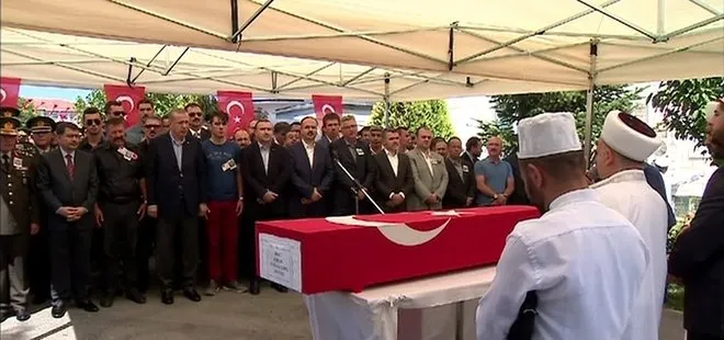 Cumhurbaşkanı Erdoğan, cenaze namazı öncesi şehidin babası ve kardeşine taziyelerini iletti.