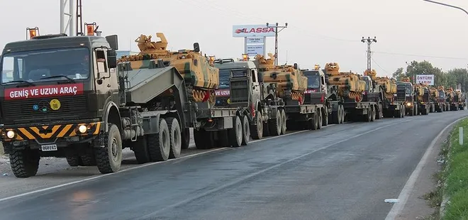 Çeşitli birliklerden gönderilen zırhlı personel taşıyıcılar ile askeri araçların bulunduğu konvoy, ilçeye varmalarının ardından Suriye sınır hattı istikametine doğru hareket etti.
