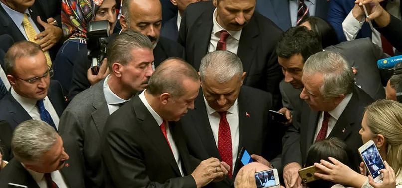 TBMM Başkanı İsmail Kahraman, Cumhurbaşkanı Recep Tayyip Erdoğan, Başbakan Binali Yıldırım ve MHP Genel Başkanı Devlet Bahçeli, Cumhurbaşkanını Meclis’teki makamında bir araya geldi.