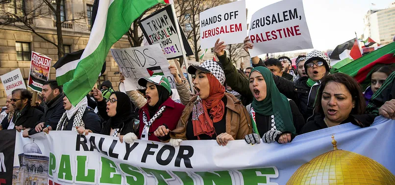 ABD'nin başkenti Washington'da toplanan binlerce gösterici, Başkan Donald Trump'ın Kudüs'ü "İsrail'in başkenti" olarak tanıma kararını protesto etti.