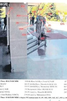 Dosyada, bertaraf edilen darbeci askerlerin elleri başlarının üstünde ÖKK'dan çıkışları ve bina girişinde diz üstü çöktükleri ana ilişkin görüntüler de yer alıyor. Bilirkişilerin, güvenlik kamerası görüntülerinden elde edilen fotoğraflarla hazırladığı raporda, şehit Halisdemir'in Özel Kuvvetler Komutanlığı'ndaki (ÖKK) son saatleri görülüyor. 20.39'da ÖKK kışlasına geldikten sonra, saat 20.41'de turnikelerden geçerek karargah binasına giren Şehit Halisdemir, sonraki fotoğraflarda, karargah binası içinde ve Harekat Merkezi civarında görülüyor. Saat 02.14'te karargah binası önüne çıkan Halisdemir, saat 02.16'da cuntacı Semih Terzi'nin de yer aldığı timin arasına karışarak Terzi'ye ateş ediyor. Ardından karargah binasının yanındaki ağaçlık alana doğru koşan Halisdemir'e, Terzi'nin ekibinde bulunan eski binbaşı Fatih Şahin tarafından ateş ediliyor. Sonraki dakikalarda darbeci bazı askerlerin Halisdemir'in cenazesinin başına toplandıkları görülüyor. Saat 02.50'de, daha önce karargah binasına götürülen yaralı Terzi, beraberindeki askerlerce GATA'ya sevk edilmek üzere helikopter pistine taşınıyor.