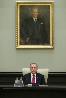 Cumhurbaşkanlığı Kabinesi, Cumhurbaşkanı Recep Tayyip Erdoğan başkanlığında ikinci toplantısını dün yaptı. Külliye'de dün 14.30'da başlayan toplantının ana gündem maddelerini hükümetin 100 günlük eylem planı ile ABD'nin Türkiye'ye yaptırım uygulanacağına ilişkin açıklamaları oluşturdu. 5 saat 40 dakika süren toplantıya ilişkin basın açıklaması yapan Cumhurbaşkanlığı Sözcüsü İbrahim Kalın, özetle şunları söyledi: