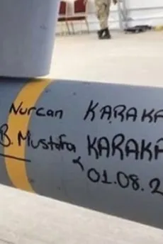 TSK'nın hava harekatında kullanılan mühimmatın üzerine şehit düşen Nurcan Karakaya ve 11 aylık bebeği Mustafa Karakaya'nın isimleri yazıldı.