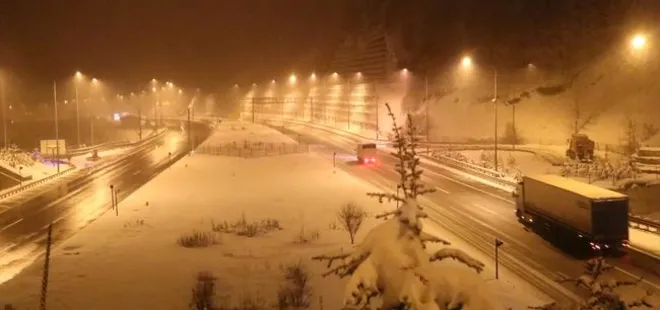 Kar yağışı, Anadolu Otoyolu'nun ise Abant Kavşağı, Elmalık, Bolu dağı Tüneli ve Bolu Dağı Viyadükleri kesimlerinde etkisini sürdürüyor.