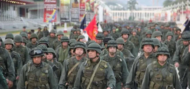 Venezuela Silahlı Kuvvetleri mensubu askerler, ABD'nin baskısına karşın morallerin yüksek olduğunu sergilemek için yürüdü. Venezuela Savunma Bakanlığı'nın Twitter hesabından yapılan açıklamada, "Bugün, 28 Ocak, şanlı ordumuzun erkek ve kadınları, Amerikan emperyalizminin aralıksız saldırıları karşısında morallerin yüksek olduğunu sergiledi. Venezuela'yı korumak boynumuzun borcu" dedi.