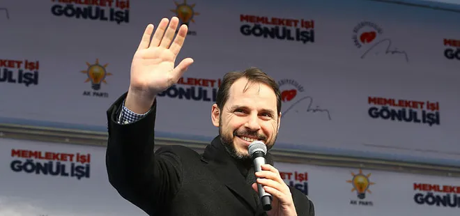 Berat Albayrak, "Son 5 yıldır her yıl en az bir seçim yaşadık ama bu son seçim enteresan. 6 ay önce 5 yıl boyunca maruz kaldığımız saldırılardan bir tanesine daha maruz kaldık. Ekonomik bir saldırı ile dolar 6, 7, 8, 9, 10 lira olacak diye ülkemize yüklenenler... Cumhurbaşkanımızın liderliğinde yeni sistemin etkinliğinde avuçlarını yalayacakları bir şekilde demir bir yumrukla doları 5 liraya indirdik. " ifadesini kullandı.