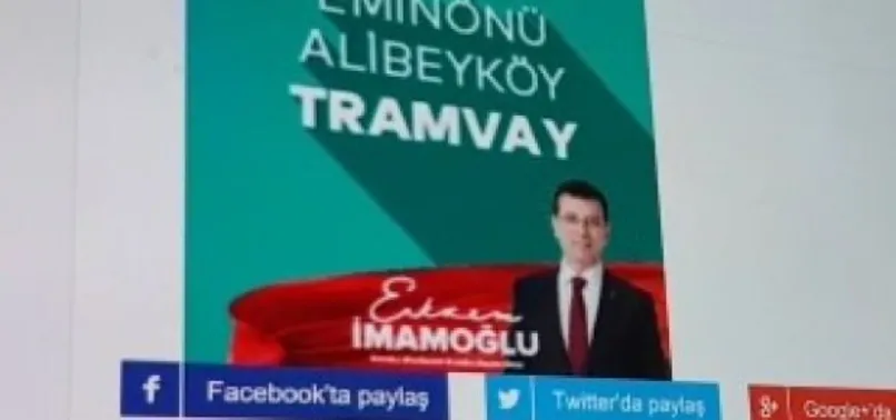 Söz konusu reklamlarda İmamoğlu, Eminönü-Alibeyköy tramvay hattınıvadediyor.