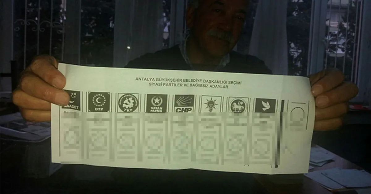 Antalya'da 1 milyon 708 bin seçmenin 5 bin 457 sandıkta oylarını kullanmasının ardından sandıklardan ilginç bir oy pusulası daha çıktı. Muratpaşa ilçesindeki Merkez Ortaokulunda 2497 nolu sandıkta bir seçmenin Büyükşehir Belediyesi adayları kısmına "BEŞİKTAŞK" yazarak oy kullanılması ve oyun sandık kurulu tarafından geçersiz sayılmasının ardından ikinci vaka Alanya'da yaşandı.