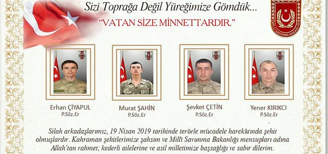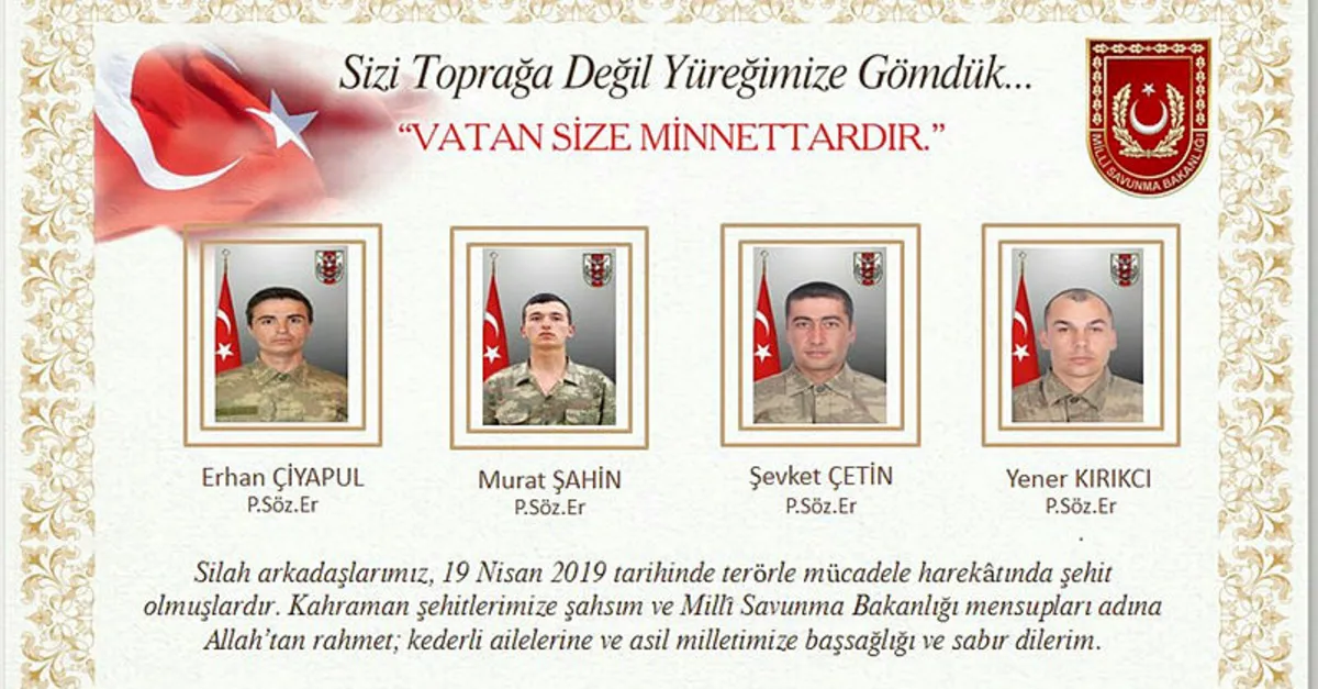 Hain saldırıda şehit olan dört askerin kimlikleri ise şu şekilde: Erhan ÇİYAPUL, Murat ŞAHİN, Şevket ÇETİN, Yener Kırıkçı...