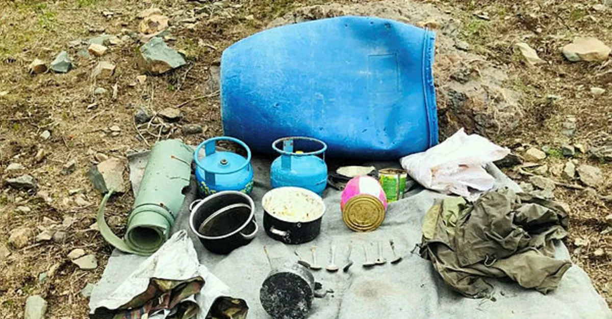 "Şehit Jandarma Uzman Çavuş Sabri Eryeler" adı verilen operasyonda, teröristlerce araziye gömülü 2 tüp, battaniye, mat, termal şemsiye, el dürbünü çantası, demlik, 2 tencere, 7 yemek kaşığı, 2 su bardağı ve mont ele geçirildi.