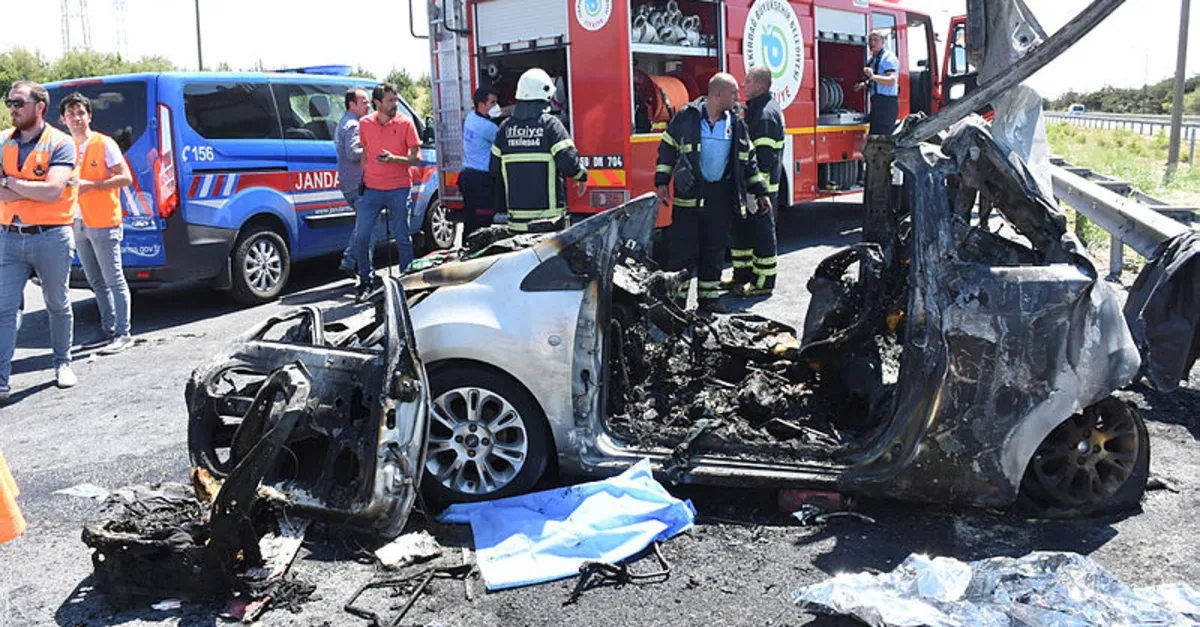 İtfaiye ekipleri tarafından otomobilden çıkarılan cesetler, Çorlu Devlet Hastanesi morguna kaldırıldı.
