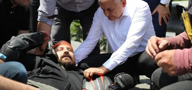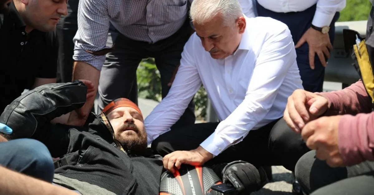 Binali Yıldırım, kaza yapan motosikletliye yardım etti