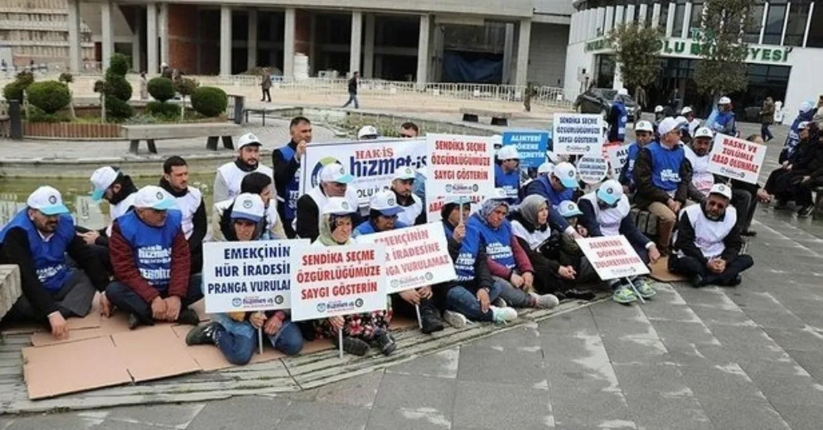 Hak-İş Genel Başkanı Mahmut Arslan, Hizmet-İş Sendikasının Bolu Belediyesindeki işten çıkarmaları protesto etmek amacıyla düzenlediği 'Emek ve Adalet Yürüyüşü'nden sonuç alınmadığını belirterek, taleplerinin karşılanmaması halinde Kurban Bayramı'ndan sonra açlık grevine başlayacaklarını bildirdi. Yerel seçimlerin hemen ardından CHP ve HDP'nin kazandığı belediyelerde üyelerine yönelik baskının söz konusu olduğunu aktaran Arslan, bu baskıların tüm ikazlarına rağmen devam ettiğini söyledi. Bugün itibarıyla 115 iş yerinde konfederasyonlarına bağlı sendikalardan 16 bin 585 kişinin istifa ettirildiğini bildiren Arslan, CHP ve HDP'li belediyelerdeki 766 arkadaşlarının da işlerini kaybettiğini vurguladı.