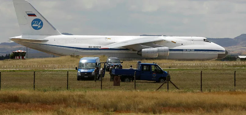S-400 teslimatı için Rusya'dan gelen 3. uçaktan, parçalar indirilmesi işlemine başlandı. S-400 Savunma Sistemi'nin parçaları, Mürted Üssü'ne inen uçaktan hangara alınıyor.