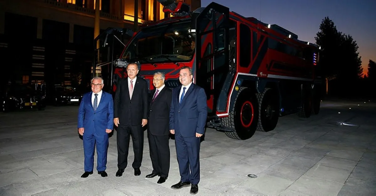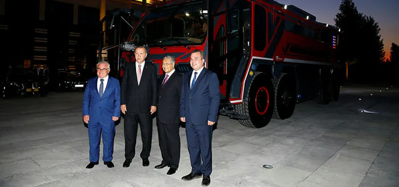 Başkan Recep Tayyip Erdoğan ve Malezya Başbakanı Mahathir Muhammed, Malezya'ya da satışı yapılan yerli üretim itfaiye aracını inceledi
