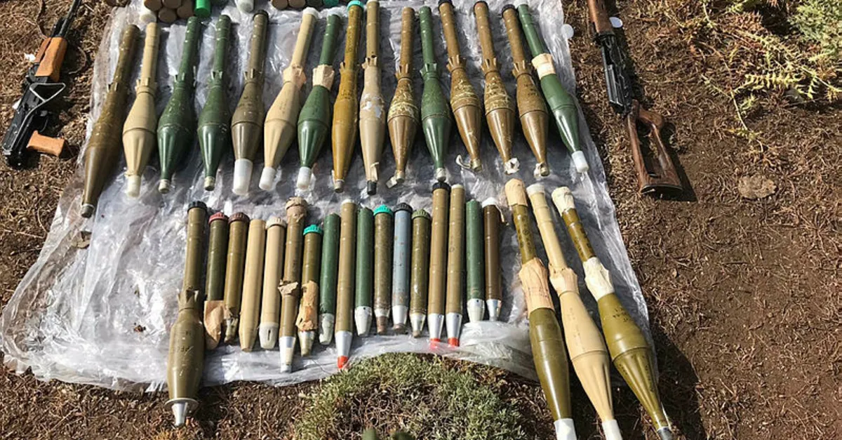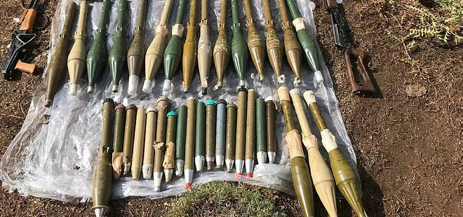 Sığınakta yapılan aramalarda, 4 kalaşnikof piyade tüfeği, bir M16 piyade tüfeği, bir dragunov keskin nişancı tüfeği, 18 anti tank roketatar mühimmatı, 17 anti personel roketatar mühimmatı, 47 roketatar mühimmatı sevk fişeği, 6 savunma tipi el bombası, 4 taarruz tipi el bombası, 13 kalaşnikof şarjörü, 5 M16 şarjörü, 4 dragunov şarjörü, çok sayıda fişek, 5 elektrikli fünye, bir Yaesu el telsizi, 25 örgütsel kıyafet, 3 boş tüp ve çok sayıda yaşam malzemesi bulundu.