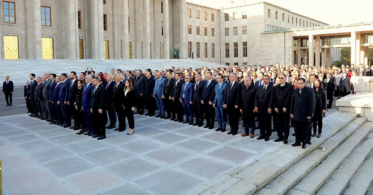 TBMM Başkanvekili Levent Gök'ün, Atatürk Anıtı'na çelenk bırakması ardından saat 09.05'i gösterdiğinde siren sesi ile birlikte saygı duruşunda bulunularak, İstiklal Marşı okundu.